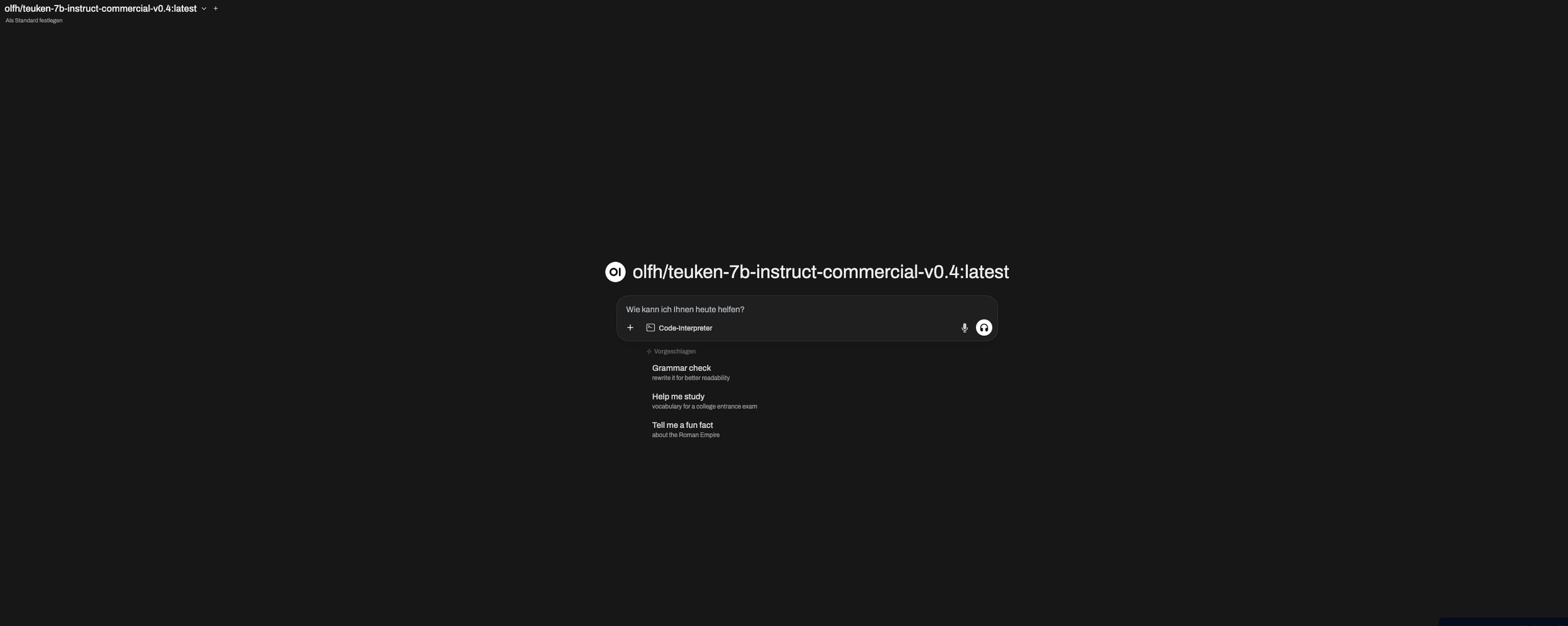 Das ist die Ansicht, die man bekommt, wenn man einen neuen Chat mit der Open WebUI startet.